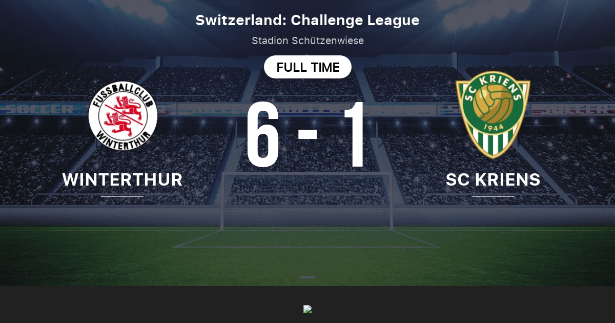 SC Kriens v FC Stade Ls Ouchy. On 2022-01-29 the latest round of matches of Challenge League comes to Stadion Schützenwiese where FC Winterthur face off against SC Kriens in what promises to be a fascinating encounter. In 5 7143 matches played at home was total goals team and opponent Over 15 goals.